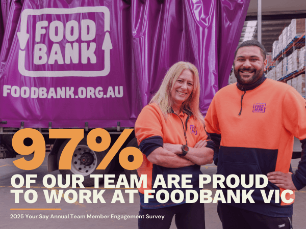 When you join Foodbank Victoria, you’re not just taking a job, you’re joining a mission. A mission to create a more food secure future for all Victorians.